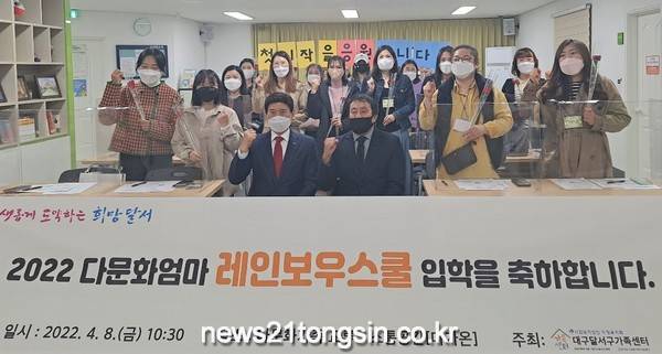 (대구=뉴스21통신) 박창남기자 = 달서구는 8일 이곡동 소재 다문화가족 교류·소통 공간 ‘다가온’에서 다문화가정 학부모 역량 강화를 위해‘다문화엄마 레인보우스쿨’입학식을 개최했다고 밝혔다.
