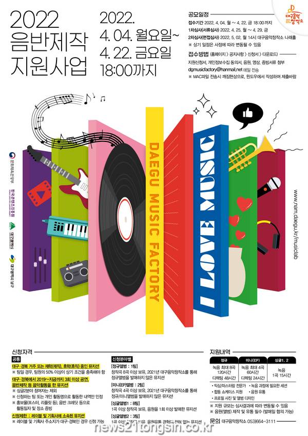 지원 대상자는 공모를 통해 선정하며 신청은 오는 4월 22일 18시까지 신청서, 데모음원,