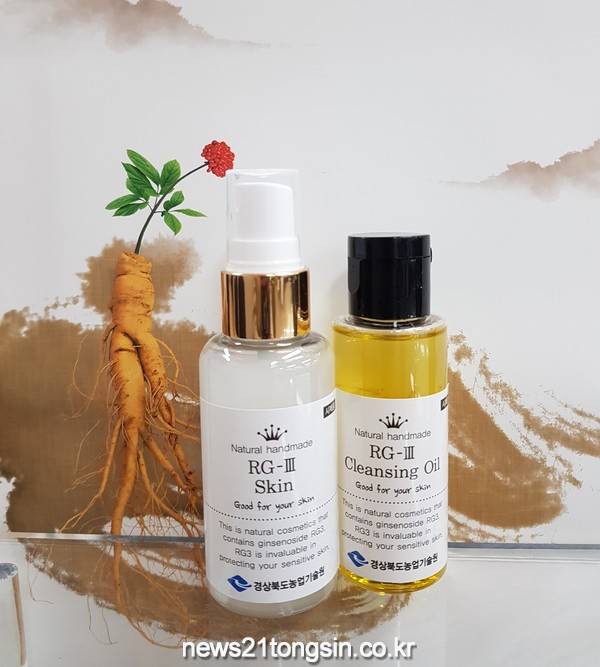 개발된 화장품은 스킨과 클렌징오일로 스킨은 Rg3, 히알루론산 등을 포함해 피부 보습효과가 뛰어나며, 클렌징오일은 Rg3, 천연오일 등을 포함한 피부 노폐물 제거용 세안용품이다.