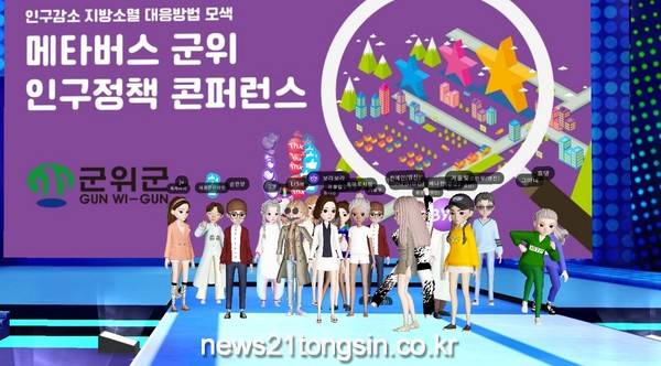 군위군은 12일 메타버스를 활용한 인구정책 콘퍼런스를 진행했다. 콘퍼런스에는 지역주민 등 관내외 다양한 계층이 참여하여 온라인 메타버스 최대 수용인원인 131명을 초과하며 열띤 토론의 장이 열렸다.