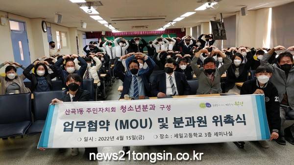 부평구 산곡1동 주민자치회는 15일 세일고등학교 세미나실에서 세일고, 산곡1동 행정복지센터와 청소년분과 구성을 위한 3자 업무협약을 체결했다.