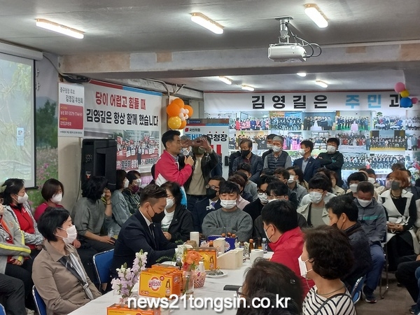 (뉴스21통신/박형만기자) = 4월16일 오후2시 울산중구청장 예비후보 김영길(전 중구의회 의장)은 선거대책사무실(중구 복산동)에서 200여명의 선거지지자들이 운집한 가운데 확대간부회의를 가졌다.