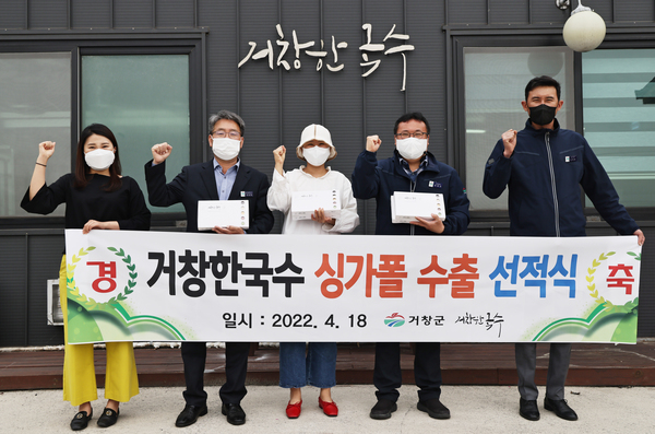 거창군은 지난 18일 거창읍 장팔리에 소재한 농업회사법인 ㈜거창한국수(대표 김상희)에서 농업기술센터 소장 및 수출관계자 등이 참석한 가운데 싱가폴 시장 수출을 기념하기 위한 수출 선적식을 진행하고 본격적인 싱가폴 현지 소비자 공략에 나섰다고 19일 전했다.