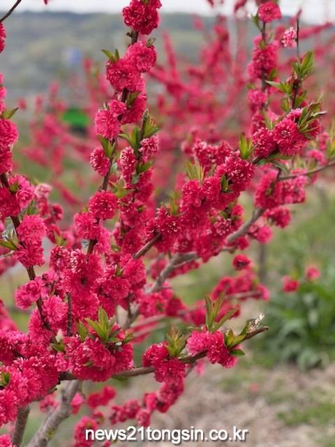 의성군 봉양면(도리원) 일대에 복숭아꽃이 만발했다. 올해 복숭아꽃은 예년에 비해 더욱 아름답게 만개하여 봉양면 전체를 화사하고 은은한 향기로 물들이고 있다.