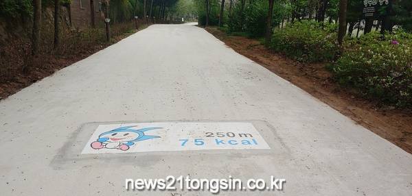 등산로 정비 구간은 문학산 옛 군부대 막사에서 정상부까지 1.1km으로 노후 콘크리트 재포장, 정상부 편익시설 설치, 배수로 차폐 식재, 조명 설치 등을 통해 이용객 안전사고를 예방하고 쾌적한 산림휴양공간을 제공한다. 특히 포장도로 바닥에 50m 간격으로 구 마스코트 ‘미추’를 활용한 칼로리 소모량 표시로 자연 속 숲길을 거닐며 건강을 증진시킬 수 있도록 했다.