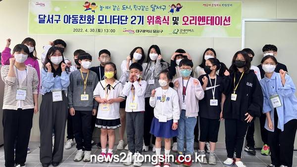 (대구=뉴스21통신) 박창남기자 = 달서구는 지난 30일 달서구주거복지센터에서 제2기 달서구 아동친화모니터단 발대식에서 단원들에게 위촉장 수여 후 아동의 권리이해와 모니터단의 역할에 대한 교육 및 2022년 모니터단 일정에 대해 공유한다고 밝혔다.