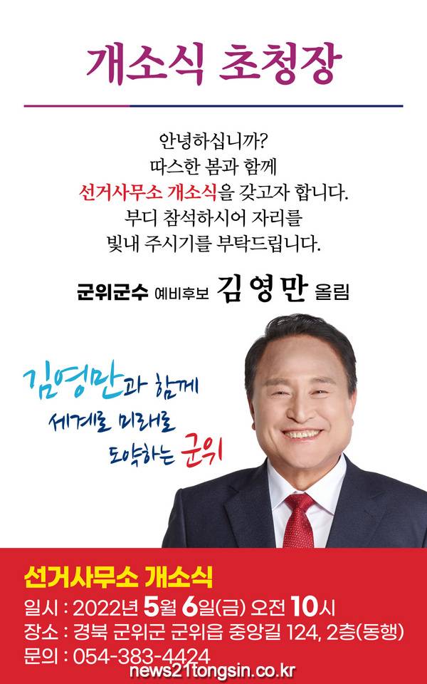 국민의힘 경북도당이 3선에 도전하는 포항시장, 영주시장, 군위군수의 컷오프 결정을 철회하고, 경선을 결정하자 김 군수는 경선의 부당함을 주장하며 중앙당에 경선 이의신청서를 제출하고 지난 2일 예비후보를 등록하고 선거전에 뛰어들었다.