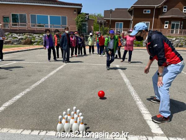 이날 행사는 4행시 짓기, 보물찾기 그리고 청팀, 백팀과 나뉘어 시니어볼링, 고리던지기, 줄다리기를 하며 즐겁고 행복한 시간을 가졌다. 그동안 코로나로 인해 주민들이 서로 만날 기회가 없어 우울감을 느끼고, 마을 일에서 점점 무관심해지는 시점에 다행히 코로나가 조금 완화되어 다시 주민들이 모여 모두가 즐겁고 함께 어울릴 수 있는 장이 마련됨으로써 주민들 스스로 자존감을 회복하고 사회적 고립감을 해소하는 시간이 되었다.