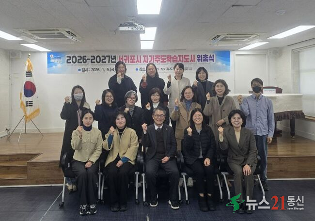 서귀포시는 지난 9일 자기주도학습지원센터에서 자기주도학습지도사 위촉식을 개최했다고 밝혔다.이번에 위촉된 지도사는 공개 모집과 서류·면접 심사를 거쳐 선발된 총 19명으로, 2027년 12월까지 2년간 센터에서 활동하게 된다. 지도사들은 센터와 관내 학교를 중심으로 자기주도학습 코칭과 문해력 향상 프로그램 등 다양한 학습 프..