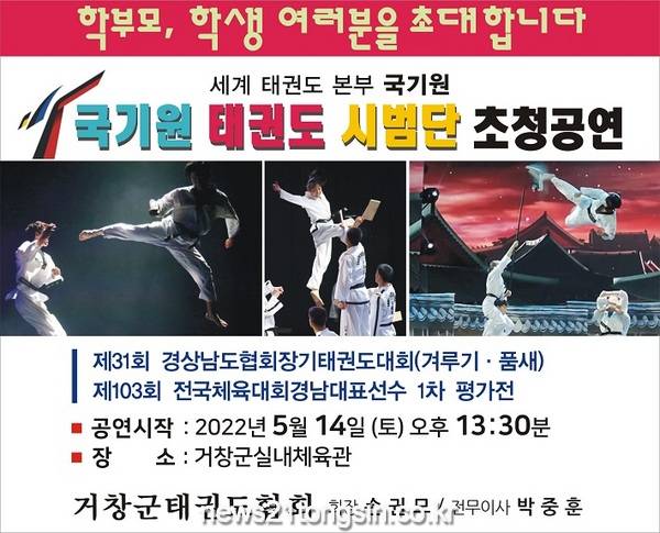 거창군은 오는 5월 14~15일과 5월 21일 총 3일간 거창군체육관에서 ‘제31회 경남협회장기 겸 제103회 전국체전 경남 대표선수 선발 1차 평가전 대권도 대회’를 개최한다고 전했다.