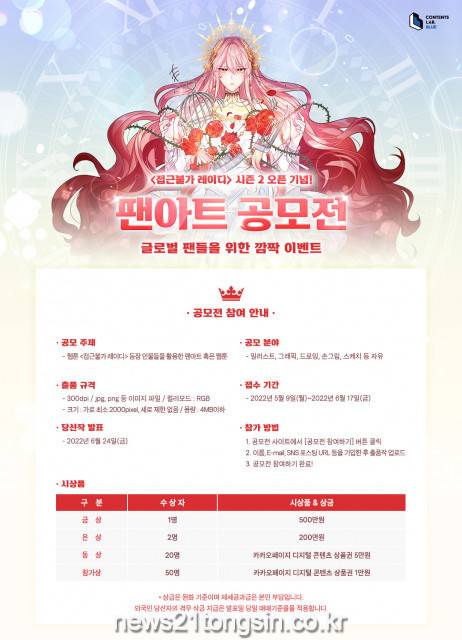 이번 팬아트 공모전은 카카오페이지를 통해 연재되고 있는 웹툰 접근불가 레이디가 한국 및 일본, 태국, 미국 등 세계적으로 사랑받으며 크게 성공한 것에 힘입어 마련된 글로벌 행사다.