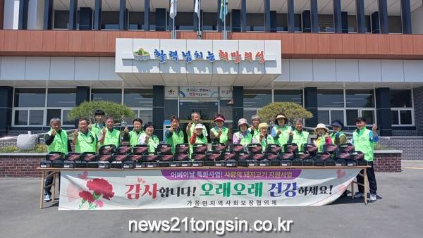 의성군 가음면 지역사회보장협의체는 지난 6일 어버이날을 앞두고 관내 저소득어르신 100가구에 돼지고기를 전달하고 안부를 살폈다고 밝혔다.