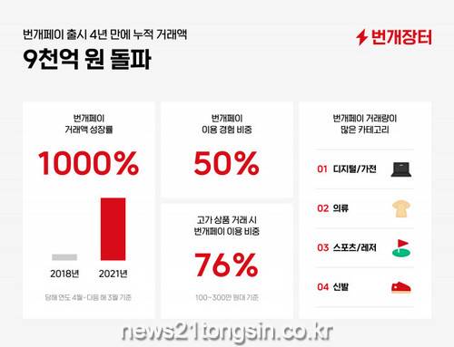 취향 중고거래 앱 번개장터가 자체 안전결제 서비스 ‘번개페이’ 출시 4년 만에 누적 거래액 약 9000억원을 돌파하며, 최근 1년간 거래액이 출시 첫해 대비 1000% 성장했다고 12일 밝혔다.