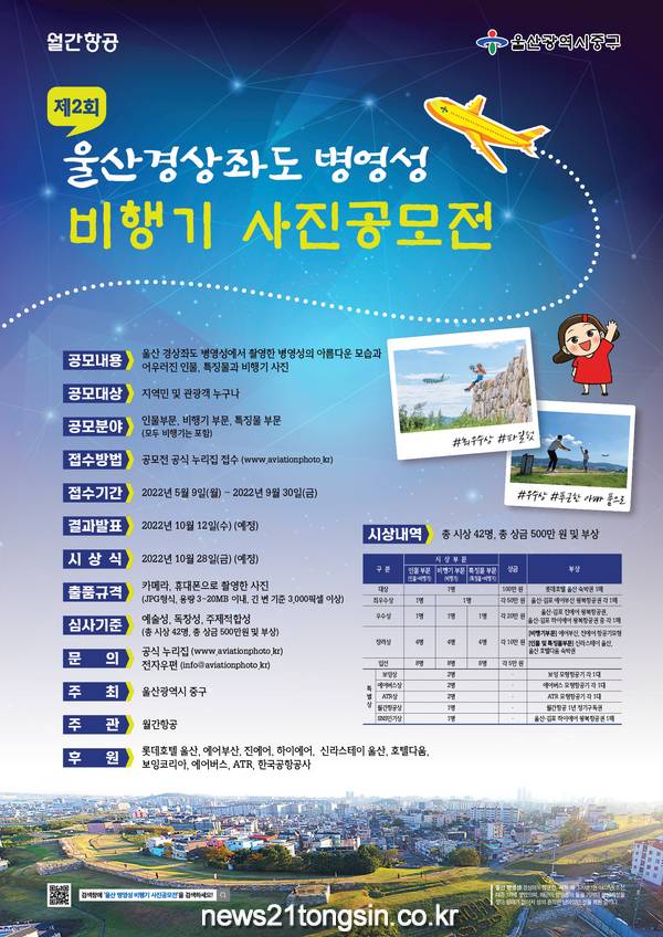 (뉴스21통신/박형만기자)=울산 중구가 ‘제2회 울산경상좌도 병영성 비행기 사진 공모전’을 개최한다.