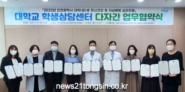 인천광역시는 대학(원)생의 정서적 안정과 심리회복 지원을 위한 ‘대학(원)생 정신건강 및 자살예방 심리지원’실시를 위해, 19일 인천광역정신건강복지센터, 인천자살예방센터와 관내 대학교 9개 학생상담센터가 업무협약을 체결했다고 밝혔다.