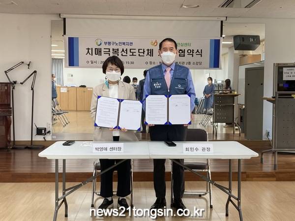 부평구 보건소는 지난 17일 부평구 노인복지관 소강당에서 지역 내 복지관 4곳과 협동조합 1곳을 치매극복 선도단체로 지정하고 협약식을 진행했다.