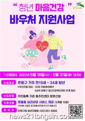 서울 은평구는 ‘청년마음건강 바우처 지원사업’ 이용 청년을 오는 31일까지 모집한다.