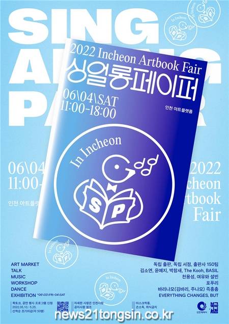 인천광역시는 오는 6월 4일(토) 「2022 인천 아트북페어 – 싱얼롱페이퍼」가 인천 아트플랫폼에서 개최된다고 밝혔다.