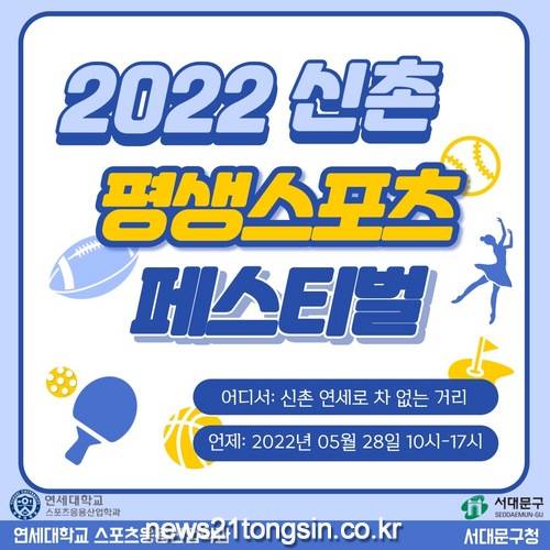 서대문구가 연세대 스포츠응용산업학과와 함께 5월 28일 오전 10시부터 오후 5시까지 신촌 연세로에서 ‘2022 신촌 평생스포츠 페스티벌’을 개최한다.