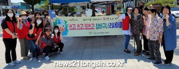 거창군은 지난 24일 군청 앞 로터리 문화휴식공간에서 거창군자원봉사센터(센터장 신현숙)주관으로 업사이클 생활교육 봉사단(단장 정영순)과 거창군 새마을부녀회(회장 신영애) 회원 등 20명이 참여하여 거창 군민 공유 장바구니 ‘또쓰백’ 이용 전 군민 확산운동을 펼쳤다고 25일 전했다.