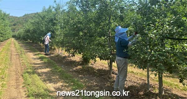경상북도 도로철도과는 25일 의성 옥산면 소재 사과 농가를 방문해 농촌 일손 돕기에 나섰다.