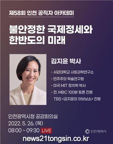 인천광역시는 26일 김지윤 박사를 초청해 ‘제58회 인천 공직자 아카데미’를 개최했다고 밝혔다.