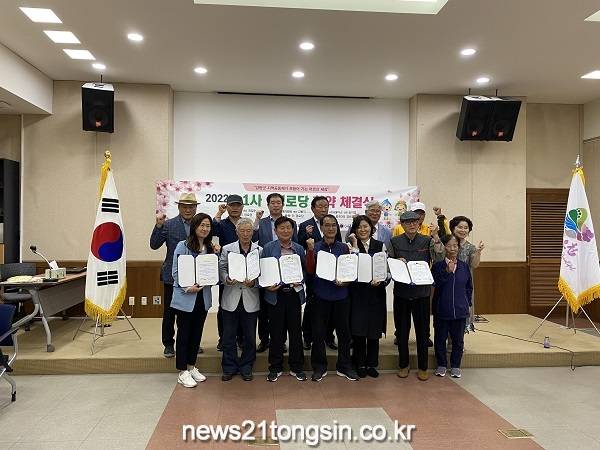 양평군 옥천면은 지난 26일, 옥천면사무소 2층 회의실에서 옥천5리 경로당, 용천1리 경로당, 용천3리 경로당 3개소와 옥천할인마트, 진앤현웰파, 새이레학교가 1사1경로당 협약을 체결하였다.