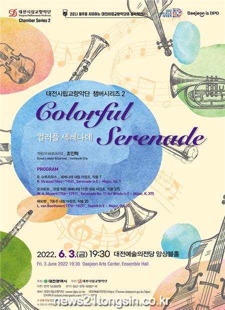 대전시립교향악단은 오는 6월 3일(금) 저녁 7시 30분, 대전예술의전당 앙상블홀에서 ‘챔버시리즈 2 컬러플 세레나데’를 연주한다.