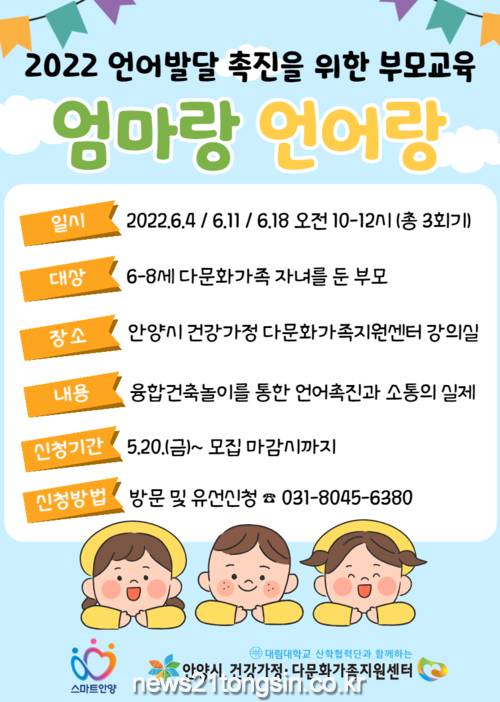 ▲ 사진=안양시안양시 건강가정·다문화가족지원센터가 오는 6월, 다문화가족 자녀 언어발달 촉진을 위한 부모 교육 “엄마랑 언어랑”을 진행한다.