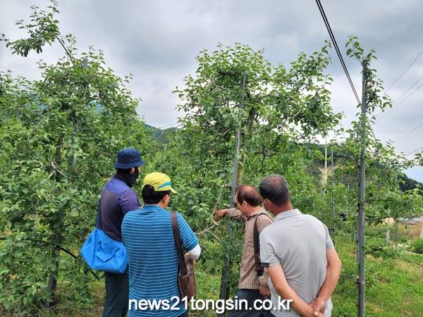 거창군은 최근 계속되고 있는 가뭄상황에서 사과 열매솎기가 한창인 본격적인 영농철을 맞아 토양수분 관리와 병해충 적기방제를 위해 현장 밀착지도에 나섰다.