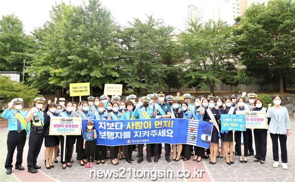 (대구=뉴스21통신) 박창남기자 = 대구 달서경찰서는 달서구 월촌역네거리에서 보행자 보호 교통문화 조성을 위해 유관기관(경찰·자치단체·모범운전자·녹색어머니회 등) 합동 캠페인을 개최했다고 밝혔다.