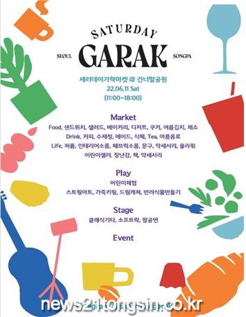 ‘세러데이가락 마켓’의 판매 및 체험부스는 6월 11일 오전 11시부터 오후 6시까지 운영되며, 밴드 공연은 오후 4시 30분부터 6시까지 진행된다.