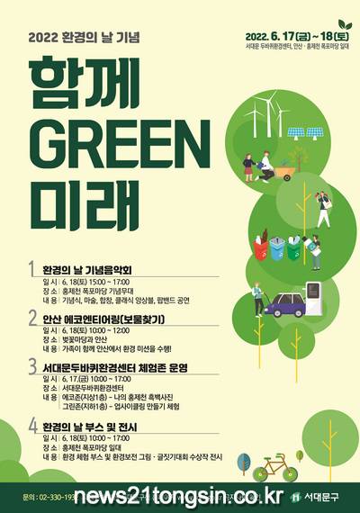 서대문구가 6월 5일 환경의날을 기념해 6월 17∼18일 관내 홍제천 일대에서 ‘함께 GREEN 미래’ 행사를 개최한다.