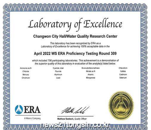 창원특례시 상수도사업소(소장 김상운)는 미국 환경자원협회에서 주관하는 먹는물 분야 국제숙련도 평가에서 8년 연속 우수 분석기관으로 인증받았다고 16일 밝혔다.