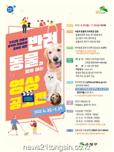 서울 은평구는 성숙한 반려문화 조성을 위해 ‘반려동물과 함께하는 영상 공모전’을 20일부터 내달 29일까지 개최한다.