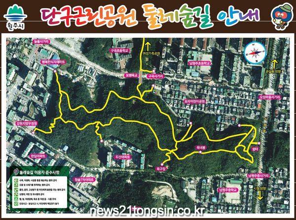원주시는 도심 녹지축 보전 및 쾌적한 생활환경 조성을 위해 단구근린공원 보행육교 및 둘레숲길 조성사업을 완료했다고 밝혔다.