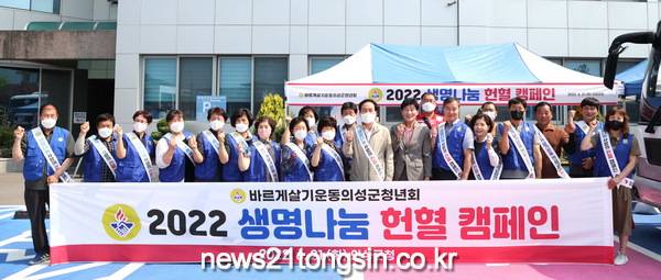 바르게살기운동의성군협의회(회장 김영대), 바르게살기운동의성군청년회(회장 구대영)는 21일 군청 전정에서 코로나19 사태로 인한 혈액의 안정적 수급과 헌혈문화의 확산에 기여하고자‘2022 생명나눔 헌혈 캠페인’을 실시했다.