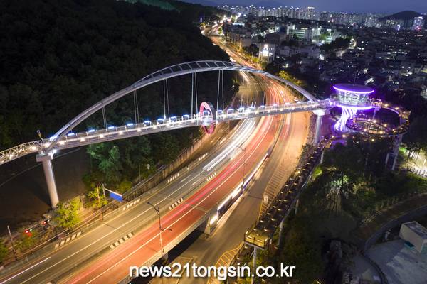 앞산 하늘다리, 일명 ‘사랑의 오작교’는 앞산순환도로를 가로지르는 첫 경관교량으로, 교량 중