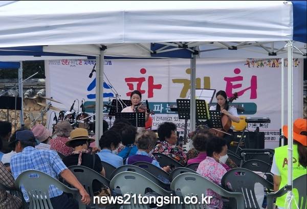 이번 행사는 지난달 거창읍 원상동체육공원에 이어 두 번째 진행했다. 이날 스토리 발굴단에 의해 선발된 5명의 스토리와 폴리스 밴드, 하모니카 연주, 주상愛Friends 합창 등 지역예술인들의 공연이 이어졌으며, LALA트리오의 바이올린, 첼로, 피아노 협주로 풍성함을 더했다.