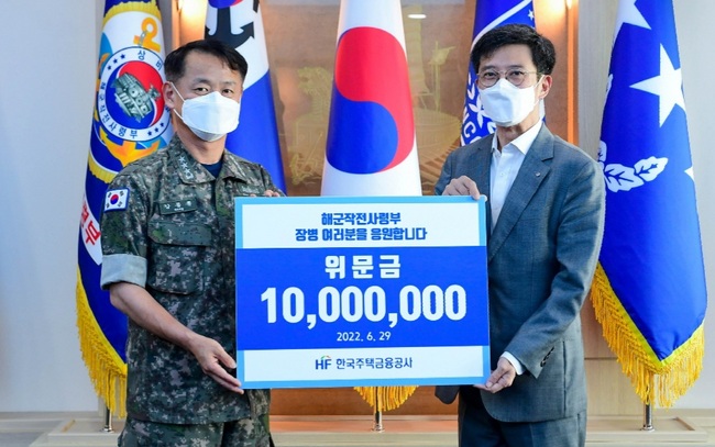 최준우 한국주택금융공사 사장은 29일 호국보훈의 달을 맞아 해군작전사령부에서 위문금 1천만 원을 전달 했다.