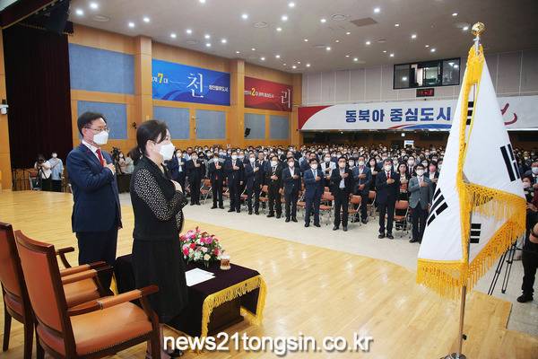 창원특례시(시장 홍남표)는 1일 오전 10시 시민홀에서 ‘민선 8기 홍남표 창원특례시장 취임식’을 갖고 ‘동북아 중심도시 창원’을 이루기 위한 시정을 공식 출범했다.