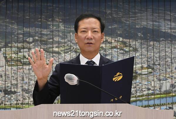 지난 6월 지방선거에서 재선한 구인모 거창군수는 민선8기를 시작하는 첫날 아침 충혼탑 참배를 마치고 7월 정례조회에 참석해서 취임선서 후에 직원들의 축하 꽃다발을 받고 유공자 표창장 전수, 민선8기 취임인사를 했다.