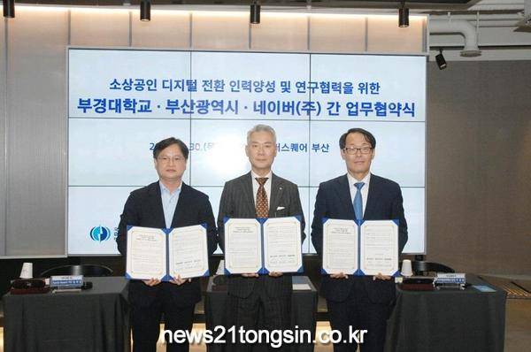 부산시는 어제(30일) 오후 ‘네이버 스퀘어’(해운대구)에서 소상공인 디지털 전환과 실무인력 양성을 위해 ‘소상공인 디지털 전환 인력양성 및 연구 협력 업무협약’을 체결했다고 밝혔다.
