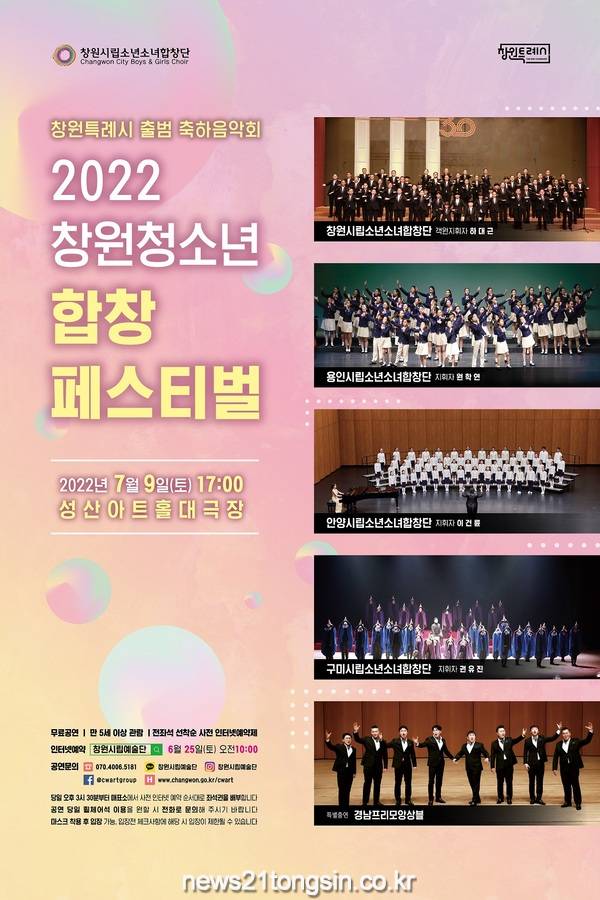 창원특례시(시장 홍남표)는 오는 9일 오후 5시 성산아트홀 대극장에서 ‘2022 창원 청소년 합창 Festival’을 개최한다고 5일 밝혔다.