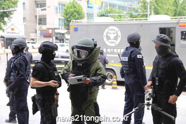 이어, 경찰 초동조치팀과 관계기관들이 신속출동하여 현장보존 및 시민대피등의 초동조치한 뒤 경찰특공대 EOD(폭발물 처리반)이 도착하여 폭발물 탐지 후 안전히 폭발물 처리·수거하였다.