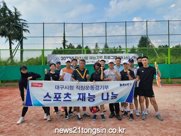 (뉴스21통신) 유재원기자 = 대구시청 테니스팀은 지난 7일 제2작전사령부 테니스코트에서 국군장병 및 군부대 간부들을 대상으로 재능기부 행사를 갸졌다.