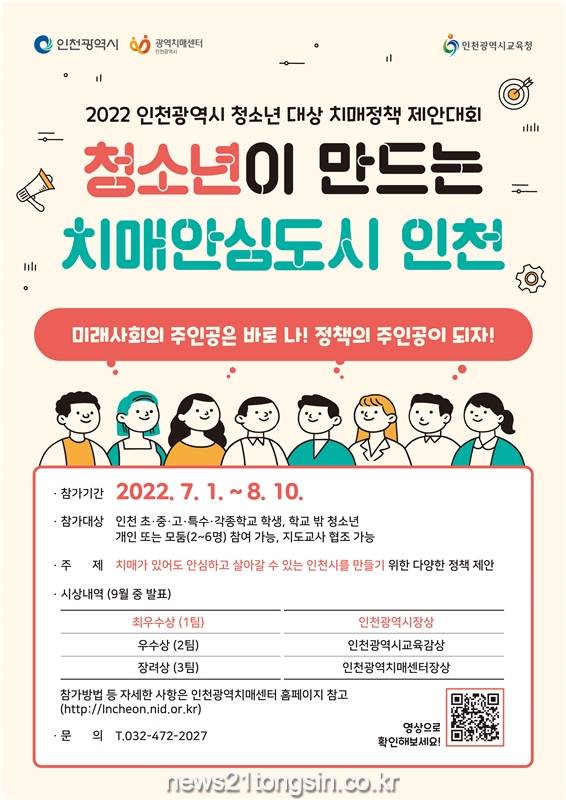 인천광역시는 전 세대가 동참하는 치매안심도시를 조성하고자 ‘청소년 대상 치매정책 제안대회’를 개최한다고 밝혔다.
