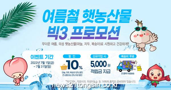 의성군는 여름 햇농산물 출하를 기념하여 7월 한 달간 의성군 대표 농특산물 쇼핑몰인 의성장날에서 프로모션을 실시한다.