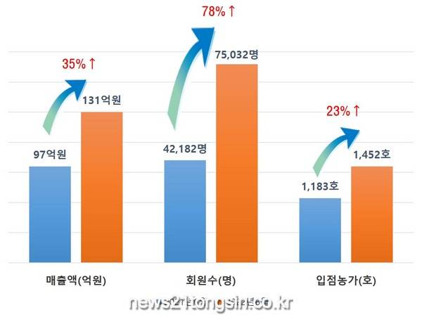 아울러, 취약농가 지원, 가격하락 농산물 소비 촉진, 경북도 출산축하쿠폰 지원사업 등 공공 쇼핑몰로서 공익적인 역할도 충실히 수행했기 때문으로 파악했다.