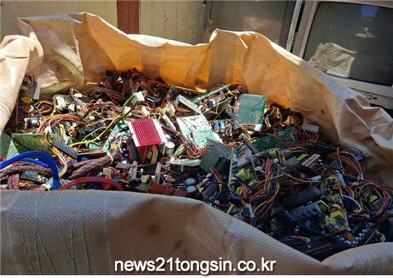폐가전제품 및 폐타이어, 헌옷 등을 수집·운반하거나 재활용하는 ㄴ, ㄷ, ㄹ 사업장은 학교 등 공공기관 및 소규모 고물상 등에서 수집한 폐컴퓨터 등 가전제품 약 5톤을 폐기물처리 신고를 하지 않고 보관하다가 적발되었다.